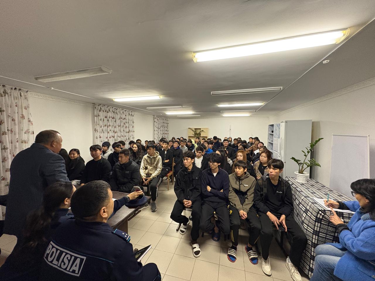 6 октября в общежитии ЗКИТУ сотрудниками МПС Зачаганского отдела полиции УП г. Уральска и преподавателями кафедры Права проведена встреча со студентами ИОТ, проживающими в общежитии ЗКИТУ по адресу ул. Жангирхана 43 по разъяснению и соблюдению концепции «Закон и порядок». На встрече участвовали начальник МПС Зачаганского ОП капитан полиции Тапалов Д.Ж, участковый инспектор полиции капитан полиции Гайсин У.С, ювенальный инспектор лейтенант полиции Саханова Н, оперуполномоченный криминальный полиции Утаров А.Ж закрепленные за нашим общежитием по территории и комендант общежития Искакова А.А.