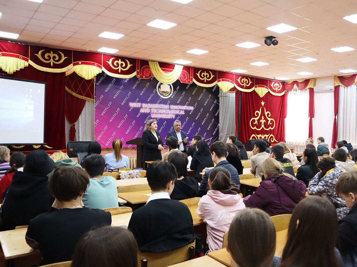 Мы рассказали ребятам про материально-техническую базу – библиотека, читальный зал, компьютерные классы, база отдыха, спортивные площадки, лаборатории и клиника.