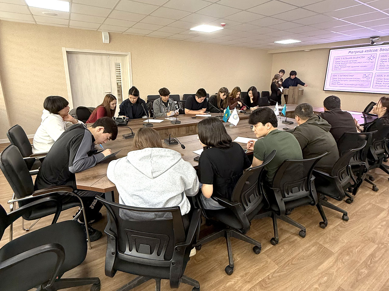 Особое внимание было уделено практико-ориентированному формату работы. Студенты принимали участие в разборе ситуационных кейсов, а также в игровых мини-симуляциях, направленных на развитие профессиональных компетенций. В рамках ролевых моделей участники выступали в качестве представителей различных служб и профессий, вовлечённых в систему общественного и ветеринарного здравоохранения.