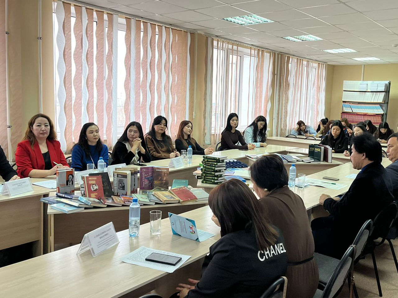 15 ноября в читальном зале университетской библиотеки прошел круглый стол с ведущими специалистами библиотек в рамках «Недели качества- 2024». Цель Круглого стола – обозначить и обсудить актуальные проблемы библиотечно-информационной деятельности. Представители библиотек города Уральск Сатыбалдиева Л. Б. – руководитель отдела развития библиотек Западно-Казахстанской областной центральной универсальной научной библиотеки имени Жубана Молдагалиева, Даулеткалиева А. Қ. – руководитель отдела обслуживания Западно- Казахстанскойобластной библиотеки для незрячих и слабовидящих граждан и Быков С. С. Доскалиева А.К. Мухамеджанова Ж.Т. ведущие специалисты областной библиотеки для детей и юношества имени Хамзы Есенжанова обозначили современные тренды в работе библиотек.