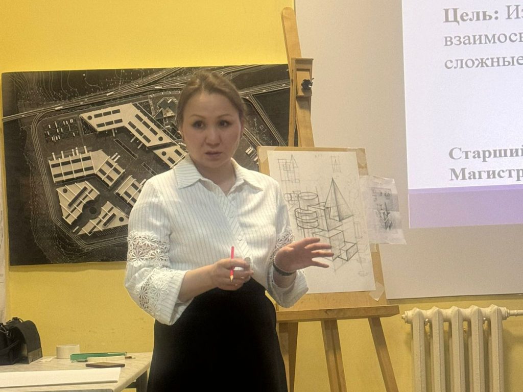 С целью укрепления связей между ВУЗами – партнерами в рамках международного сотрудничества с Тамбовским государственным техническим университетом г. Тамбов. И Западно – Казахстанским инновационно технологическим университетом старший преподаватель кафедры «Архитектура и строительство» Кенжина Ж.С. в период с 02 по 07 апреля 2024г. прочитала лекцию на тему «Композиция из группы геометрических тел (архитектурный рисунок)» для студентов гр.БАР221, БАР222, ТГТУ г. Тамбов. В ходе занятия были освещены теоретические и практические стороны построения изображения. Продемонстрированы методы ведения линейно – конструктивного рисунка по дисциплине «Архитектурный рисунок».