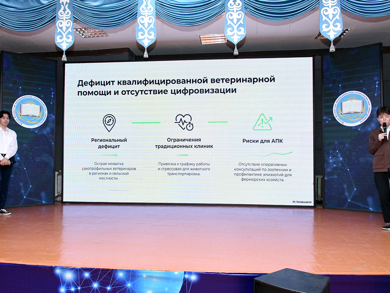 По итогам конкурса студенты 3 курса Бекташев Алишер и Насипкереев Есенбек (группа ВЕТ-32О) достойно представили университет и заняли почётное 2 место. Представленный ими проект получил высокую оценку жюри за актуальность, практическую значимость и перспективы внедрения.