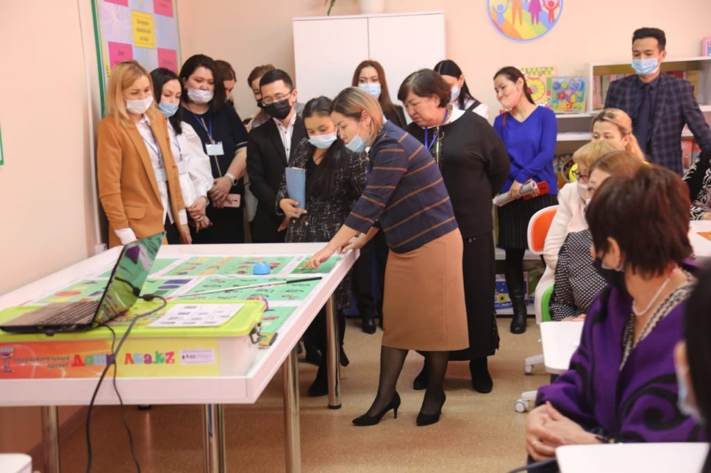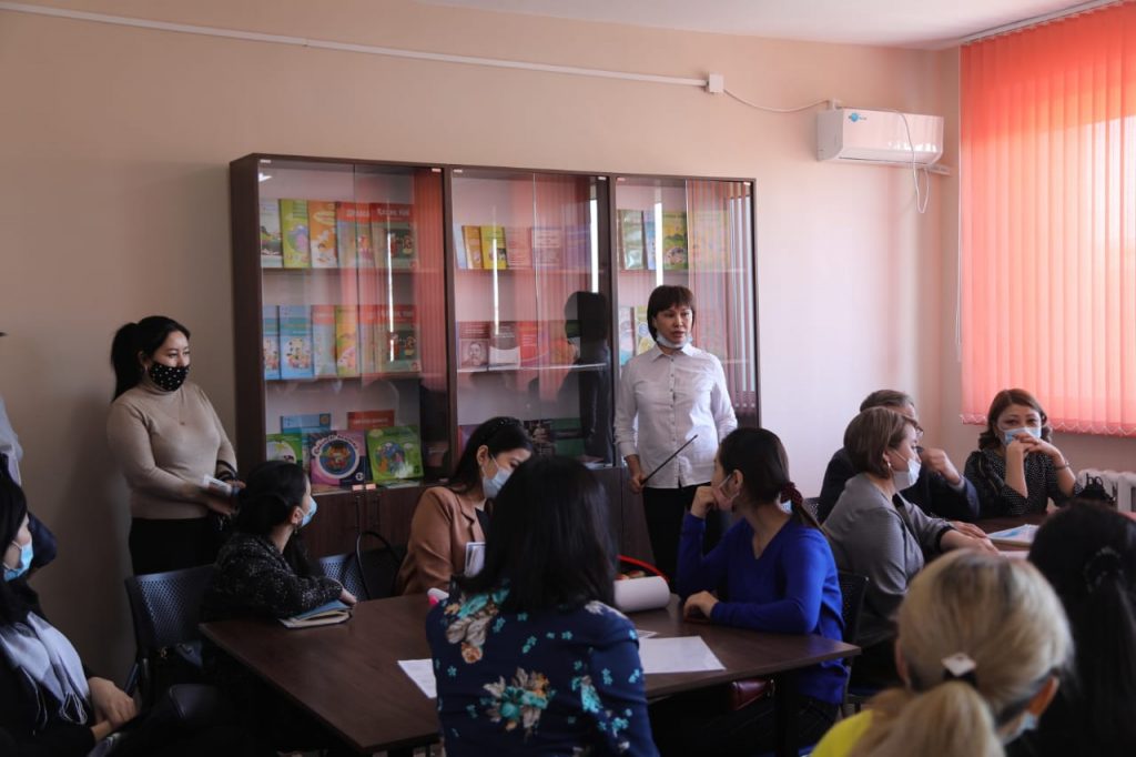 Этот кабинет специально оборудован для организации лекций по методике преподавания, самостоятельной работы студентов, самостоятельной работы преподавателя со студентами, методических семинаров, методических олимпиад, круглых столов, встреч. У студентов также есть возможность проконсультироваться с методистами вне учебных занятий. Кабинет предназначен для углубленного изучения актуальной обновленной образовательной программы. Настенные стенды украшены информацией об особенностях обновленного образовательного контента. Краткая и точная информация представлена для того, чтобы обучащиеся могли запомнить об особенностях и преимуществах содержания обновленного образования.