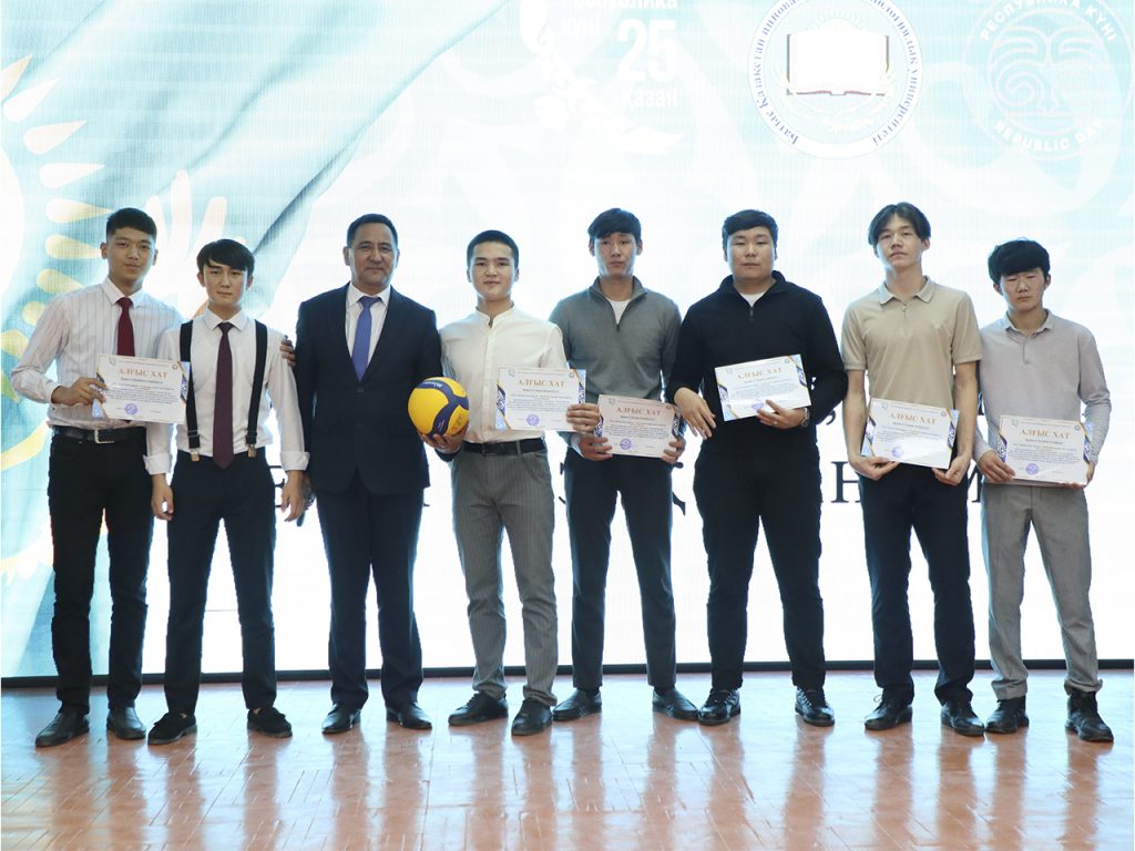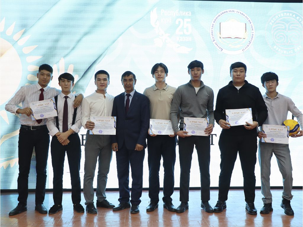 Поздравляя коллектив университета с Днем Республики, ректор, ассоциированный профессор Шакешев Б. Т. отметил важность исторического праздника в воспитании патриотизма и толерантности у подрастающего поколения. На торжественном мероприятии группа преподавателей университета была награждена поздравительной грамотой Министра науки и высшего образования РК Саясат Нурбека, благодарственными письмами акима Западно-Казахстанской области и акима города Уральска. Также группа студентов, активных как в учебе, так и в общественной жизни, получила благодарственное письмо ректора.