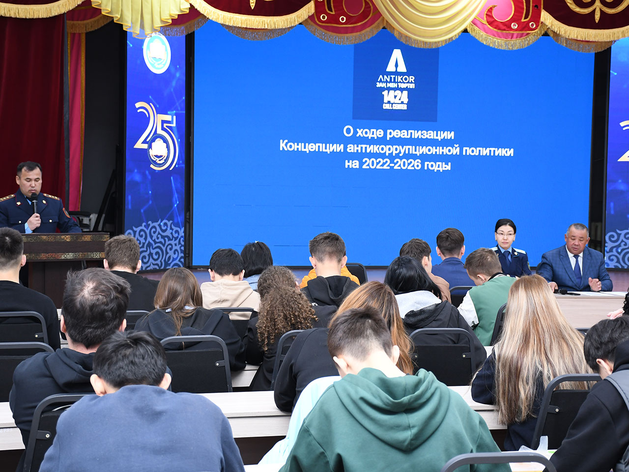 29 апреля 2025 г. в 10:00 часов согласно плану работы комплаенс службы Института отраслевых технологий в актовом зале учебного корпуса ЗКИТУ по ул. М. Ихсанова 44, проведен урок добропорядочности обучающимся по теме «Уважение к Законам РК. Предупреждение правонарушений среди молодежи» с участием старшего помощника Прокурора по ЗКО, советника юстиции Алибековой Ш., руководителя Управления превенции Антикорупционной службы по ЗКО Хайруллиным Б.М.