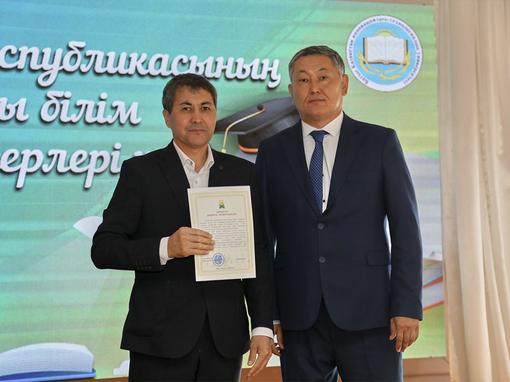 Также по случаю празднование «Дня работников высшей образования Республики Казахстан» группа преподавателей и сотрудников университета, много лет успешно работающих в сфере науки и образования, получила благодарственные письма акима Западно-Казахстанской области Н. Торегалиева и акима города Уральска, из рук проректора по воспитательной работе университета Абекешева Аянбека Иманбаевича.