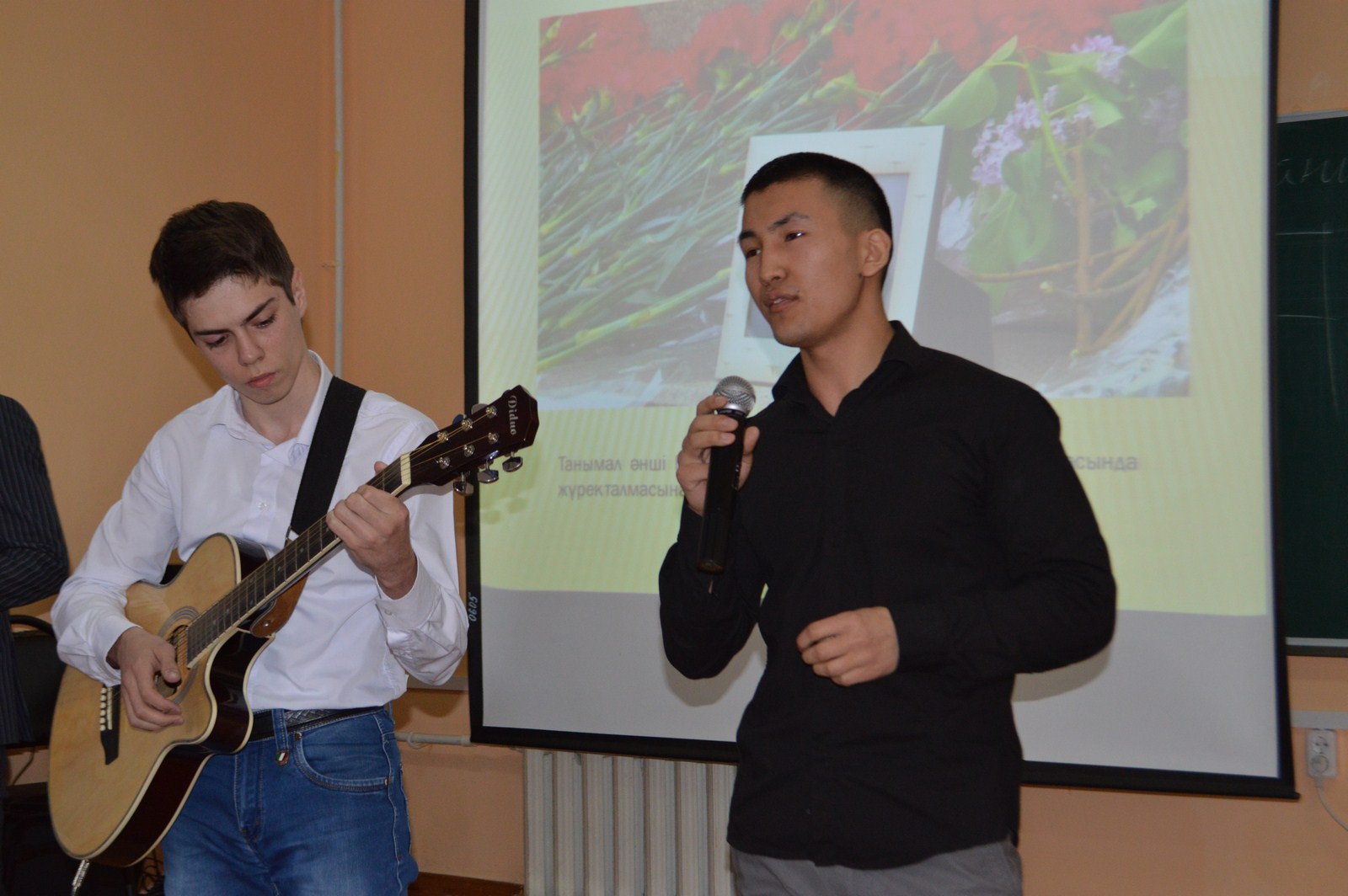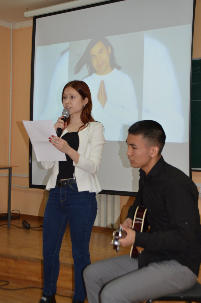 Студенты специальности «Культурно-досуговая работа» подготовили презентации, посвященные творчеству Батырхана Шукенова, рассказали о его семье, прочитали стихи и исполнили его песни.