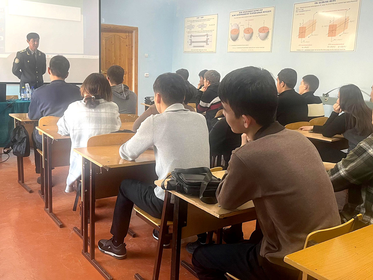 Руководитель Административного управления Департамента экономических расследований по ЗКО Бисембаева Аягоз Танырбергеновна и главный криминалист отдела криминалистики департамента расследований по Западно-Казахстанской области майор службы экологических расследований Колганатов Армат Кайдаргалиевич провели 8 декабря 2023 года встречу в Западно-Казахстанском инновационном технологическом университете с обучающимися выпускных курсов высшего учебного заведения образовательных программ 6В06104 – «Вычислительная техника и информационные системы» и 6В04202 – «Юриспруденция» на тему «Виды экономических преступлений и порядок выявления и расследования экономических преступлений в РК».