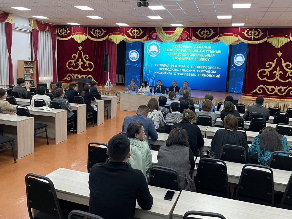 27 сентября 2023 года в актовом зале Института отраслевых технологий Западно-Казахстанского инновационно-технологического университета состоялась встреча ректора университета, профессора Шакешева Бекбулата Темержановича и ректората университета с коллективом института. На мероприятии приняли участие проректоры и директор Института, заместители директора, профессорско-преподавательский состав. Цель уже ставшей традиционной встречи — ознакомить коллектив с планом развития процесса образования и творчества в университете, правилами внутреннего распорядка университета и направлениями организации учебно-воспитательного процесса, а также с новым стратегическим документом. В ходе встречи профессорско-преподавательским составом были заданы вопросы по организации учебного процесса, по социальной поддержке обучающихся и сотрудников, приняты рекомендации по совершенствованию учебно-воспитательного процесса.