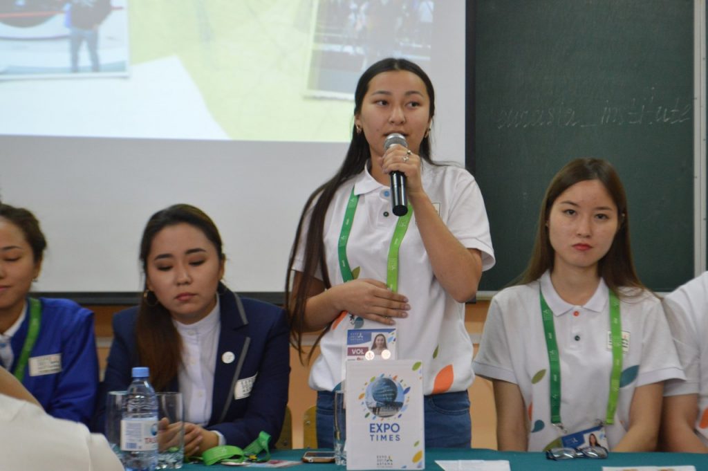 Встречу открыл проректор по воспитательной работе ЗКИТУ,магистр  А.И.Абекешев. Он рассказал о роли и значении проведенной в Астане выставки «ЭКСПО-2017»,поблагодарил студентов,принявших участие в работе выставки в качестве волонтеров.Затем выступил победитель городского смотра волонтеров «Твори добро!»,председатель студенческогоклуба«Достық»,студент 4 курса К. Рахимов. Он остановился на осбенностях волонтерского движения и призвал студентов 1-2 курсов подключиться к работе в этом направлении.
