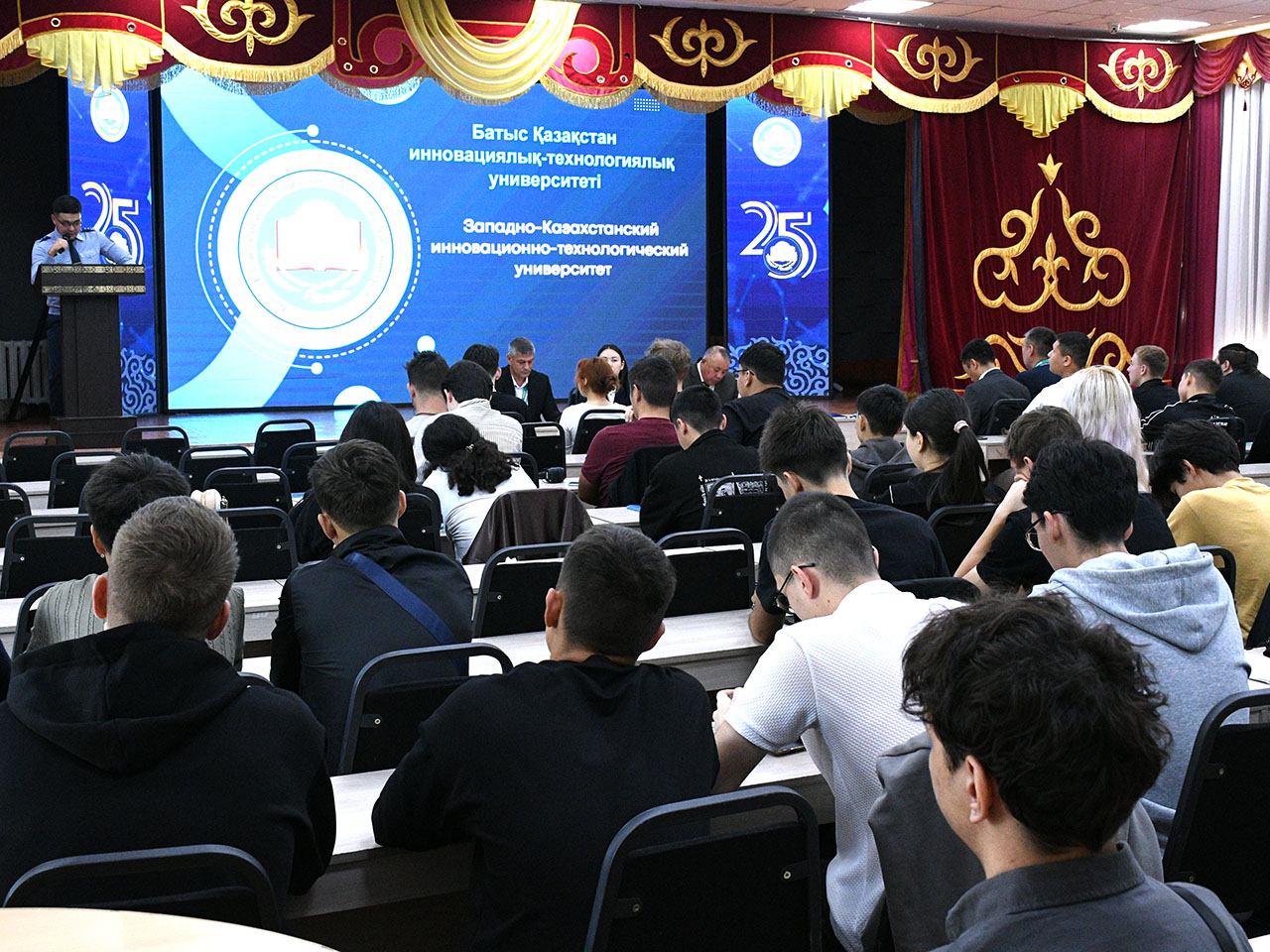 9 сентября 2025 года в актовом зале учебного корпуса ИОТ расположенного по ул. М. Ихсанова 44 в целях разъяснения Послания Народу Казахстана Президента РК Токаева К.К «Казахстан в эпоху исскуственного интелекта: актуальные задачи и их решения через цифровую трансформацию» от 8 сентября т.г в части выполнения гражданами страны концепции «Закон и порядок», профилактики правонарушений и в частности киберправонарушений, дроперства состоялась встреча студентов 1 курса ИОТ с сотрудниками Департамента полици по ЗКО и представителями АО Народный банка Казахстана.
