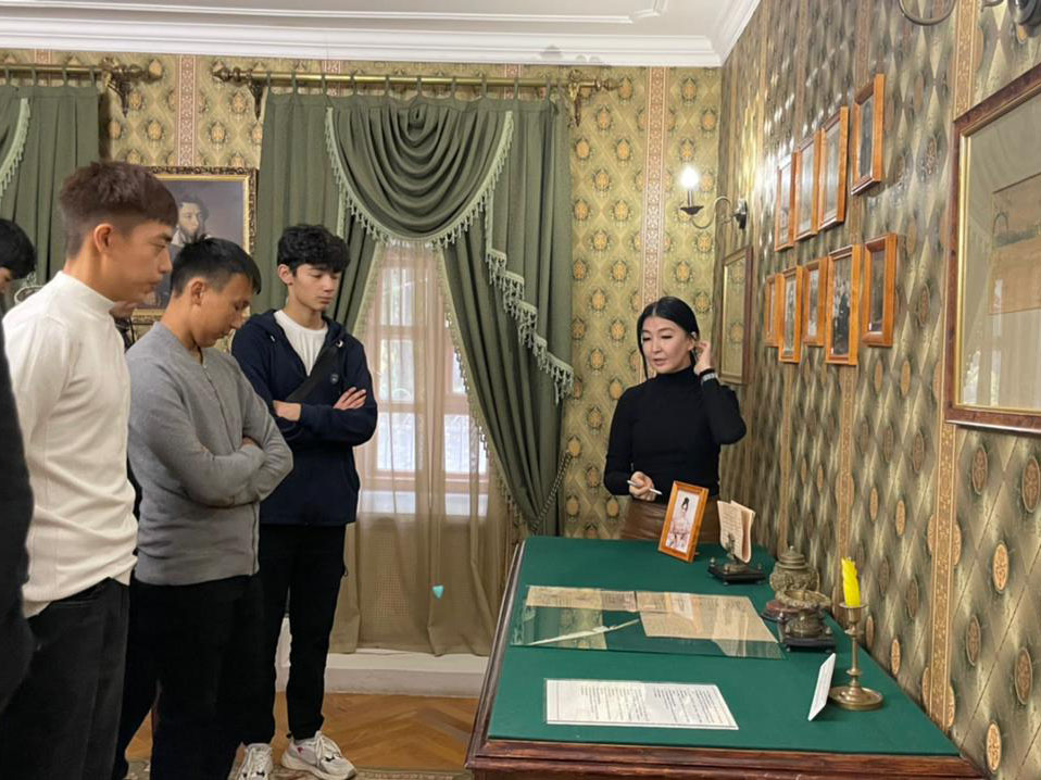 Культура является важным пунктом в жизни нашего общества. В современном мире люди изучают многие вещи через интернет. Нет сомнений в полезности данного инструмента, но это несравнимо с реальными, живыми ощущениями. С этой целью14октября 2022 года старшим преподавателем кафедры общеобразовательных дисциплин Исагуловой Т.Р. организовано посещениемузея имени А.С. Пушкинас обучающимисяI курса по образовательной программе 6В07301 «Архитектура», 6В04202 «Юриспруденция», 6В11201 «Безопасность жизнедеятельности и защита окружающей среды».Во время экскурсии ребятам рассказали, об истории самого музея и великих писателей, которые там останавливались погостить.Особое внимание привлекли экспонаты, которые бережно хранятся в старинном здании, вешалка с цилиндром и накидкой поэта, стенды, в которых экспонируются старинное издание книги «История Пугачевского бунта».Стало известно, чтов этом доме Александр Сергеевич заканчивал работу над своим известным романом «Капитанская дочка». В музее хранятся копии его рукописей, портреты писателей, письмо его жене Н.Н. Гончаровой, дубликат посмертной маски самого поэта.