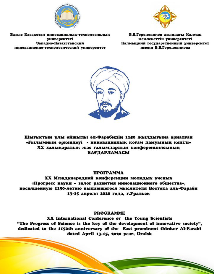 С 13 по 15 апреля 2020 года в Западно-Казахстанском инновационно-технологическом университете состоялась XX Международная научная конференция молодых ученых «Прогресс науки – залог развития инновационного общества», посвященная 1150-летию выдающегося мыслителя эпохи Средневековья аль-Фараби, внесшего неоценимый вклад в развитие науки и мировой цивилизации. На международной конференции выступились с докладами студенты Оренбургского государственного педагогического университета под руководством доцента кафедры Истории России Оренбургского государственного педагогического университета Петрич Лариса Владимировна. По окончании конференции доклады студентов Д.Тапетовой и В.Гончарова были удостоены призовых мест.