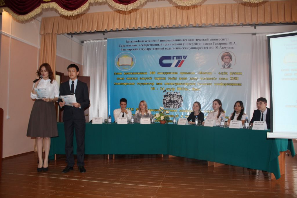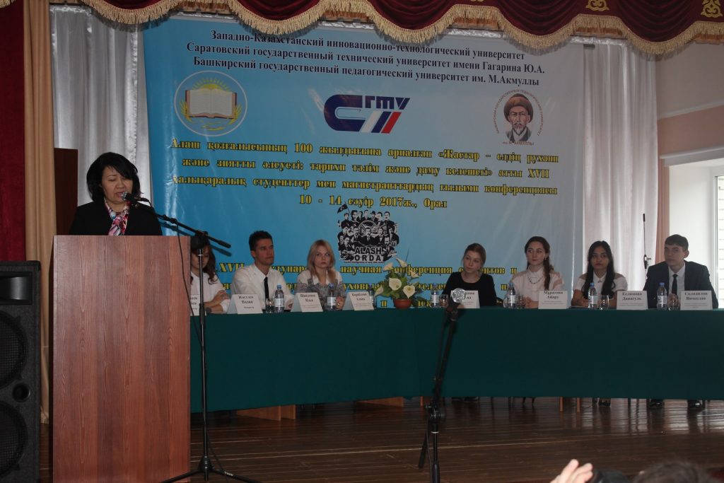 С 10 по 14 апреля 2017 года в рамках Недели науки в Западно-Казахстанском инновационно-технологическом университете проведена XVII Международная научная конференция студентов и магистрантов «Молодежь — духовный и интеллектуальный потенциал страны: исторический опыт и перспективы развития», посвященная 100-летию движения «Алаш». Соорганизаторами конференции являются Саратовский государственный технический университет имени Гагарина Ю.А. и Башкирский государственный педагогический университет имени М. Акмуллы.