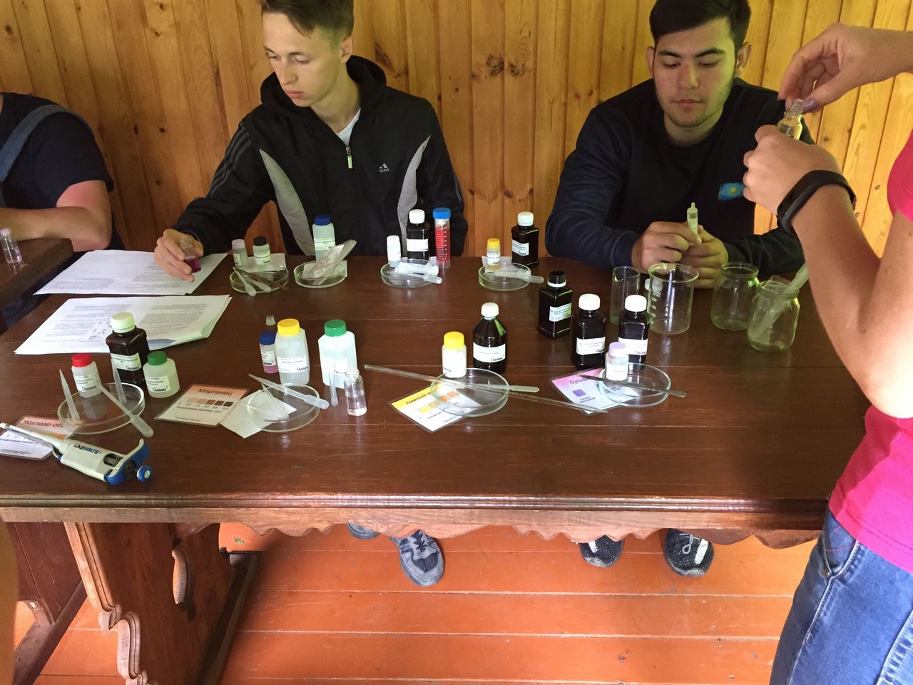 На занятии по гидрологии студентам необходимо было исследовать воду из родника «Святой». Для определения степени загрязнённости воды проведены химические опыты, в которых измерили содержание марганца, кальция, натрия, железа, сульфатов и хлоридов. Проведя все необходимые исследования, сделан вывод, что вода соответствует гигиеническим требованиям.
